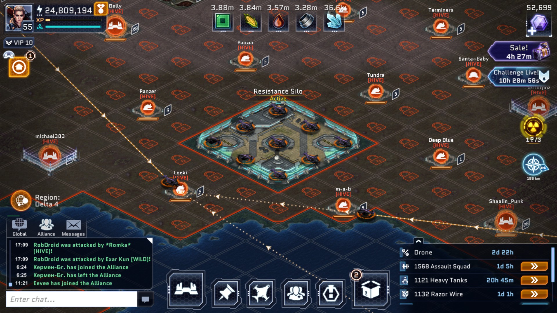 - Chat with other players, trade your resources and invite the strongest amongst your friends to defend Earth together.